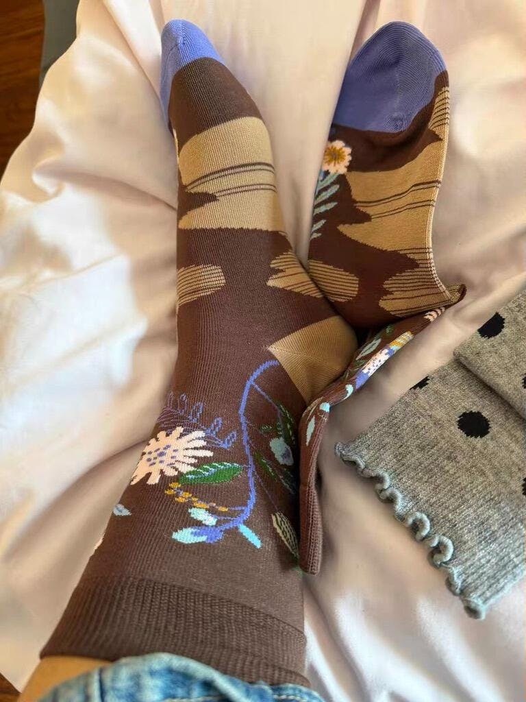Step into a world of art with these stunning oil painting style socks. Crafted from soft premium cotton, they feature vibrant and detailed illustrations of forest animals and botanical elements. These breathable and expressive crew socks are the perfect choice for art lovers looking to add a creative, colorful touch to their daily style.