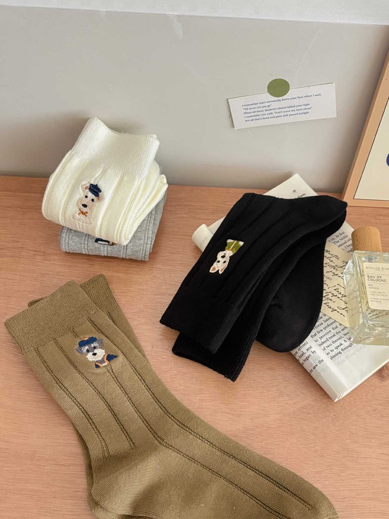 Exquisite puppy embroidery for a sophisticated touch. Premium long-staple cotton for a luxury feel.Seamless toe and heel for ultimate comfort. Elevated daily basic for your quiet luxury look. Breathable and durable for all-season wear. The perfect companion for your favorite loafers.
