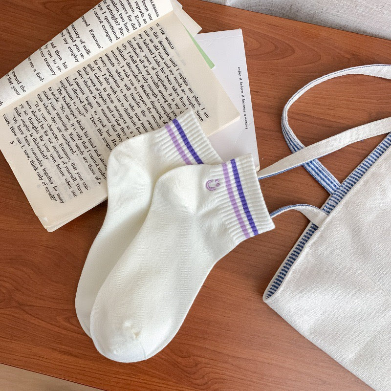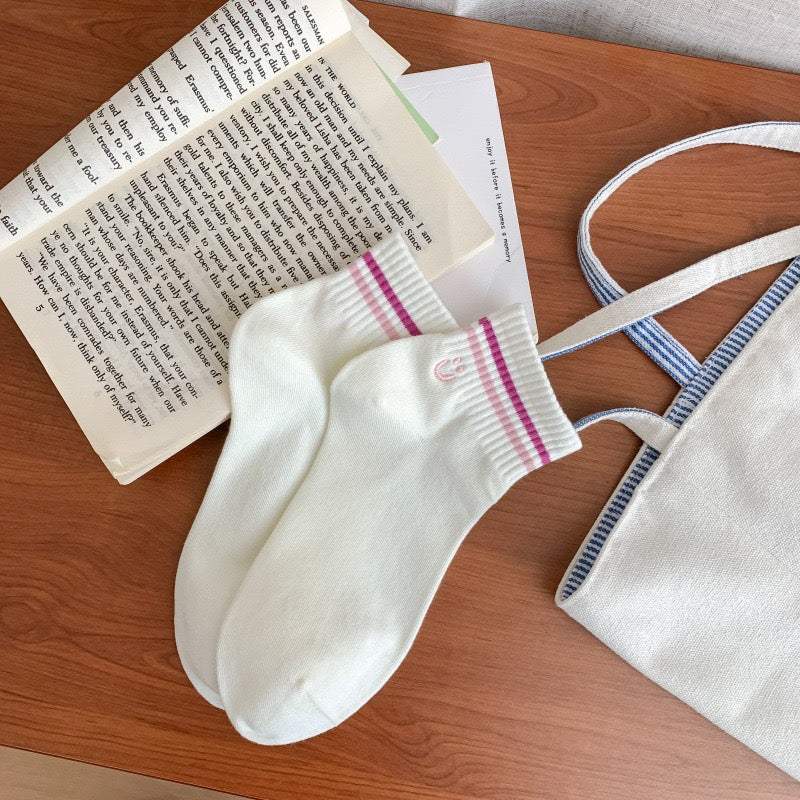 Colorful Stripe&Smile Ankle Socks