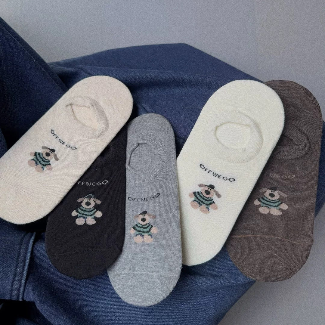 Bring effortless comfort to your summer days with these thin invisible socks. Made from lightweight breathable cotton, they feature internal silicone strips to prevent slipping and a charming puppy graphic. The perfect no-show essential to keep your feet cool and dry in sneakers or loafers.