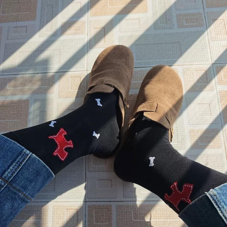 Show off your love for pups with these minimalist dachshund socks. Made from premium soft cotton, they feature clean sausage dog graphics and classic striped accents. These breathable and durable crew socks provide a snug fit and a charming, simple look for any dog lover.