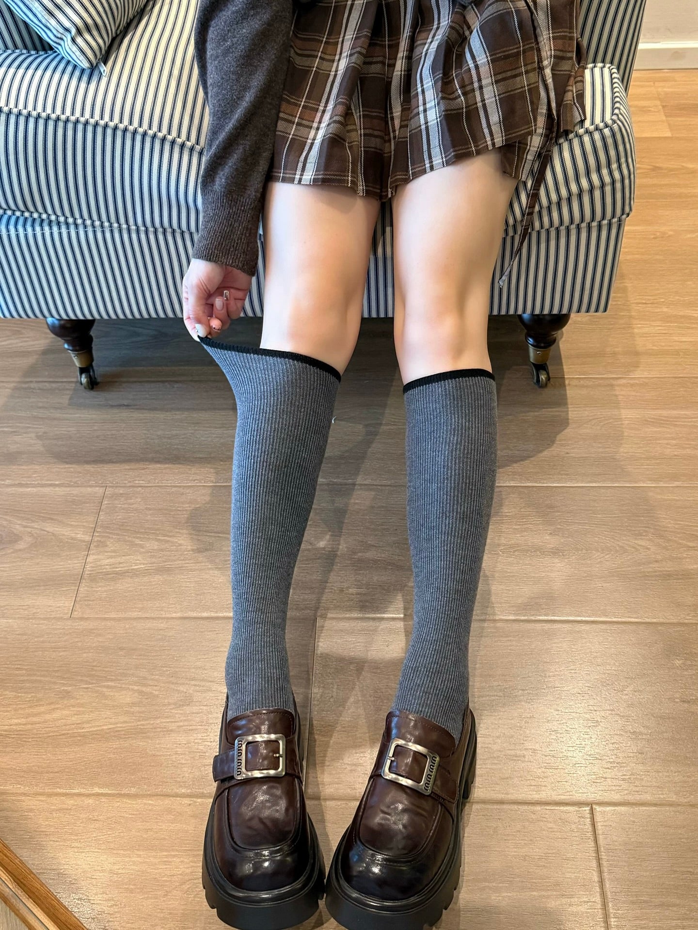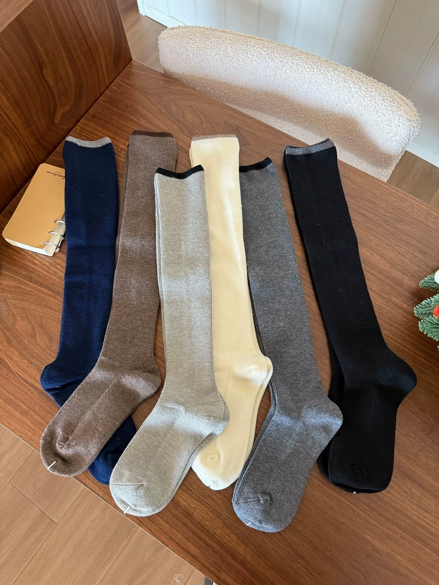 Upgrade your cozy collection with these premium wool knee-highs. Featuring a classic ribbed texture and a chic black trim, these socks are the ultimate preppy-cool essential for your wardrobe. They are super soft, warm, and designed to stay up or be worn slightly slouched for that effortless Pinterest-girl vibe. Whether you are styling them with chunky loafers and a mini skirt or lounging at home, these socks bring that quiet luxury energy to every look.