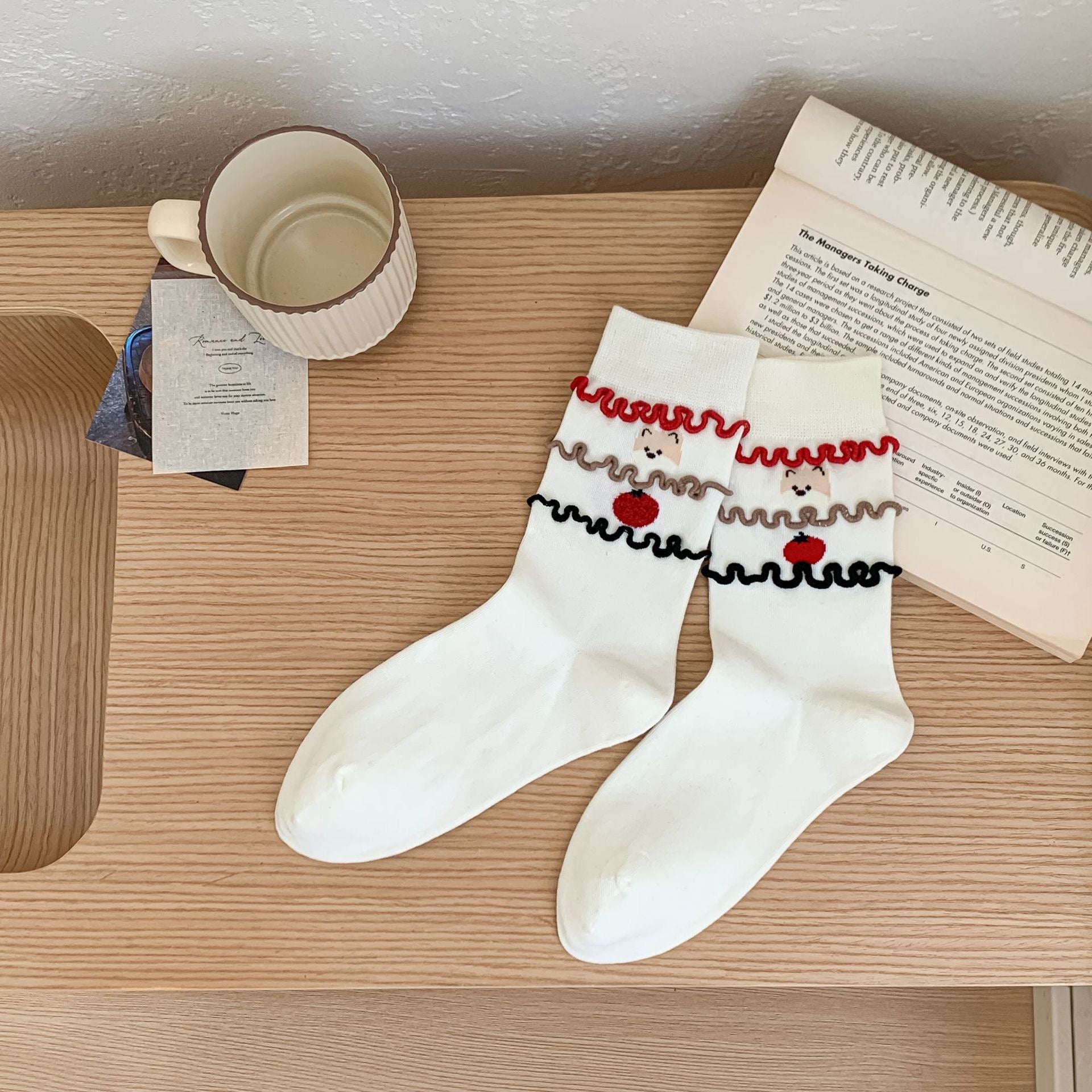 Cute Puppy & Apple Embroidery Cotton Crew Socks features playful, unique designs—for a cheerful everyday look. Made from lightweight, breathable cotton, these crisp white socks pair seamlessly with sneakers or loafers, keeping your feet comfy all spring and summer.