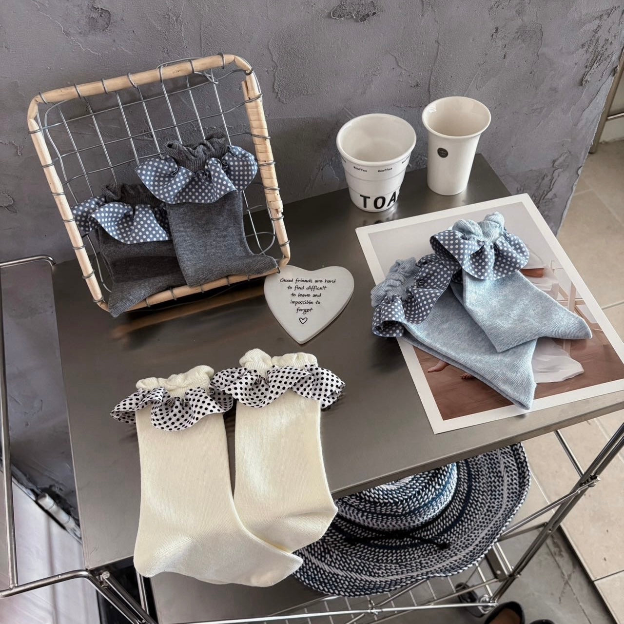 Make a statement with these charming polka dot ruffle socks. Made from soft breathable cotton, they feature oversized lace frills for a romantic vintage look. These durable and stylish crew socks are the perfect accessory to elevate your daily shoes.
