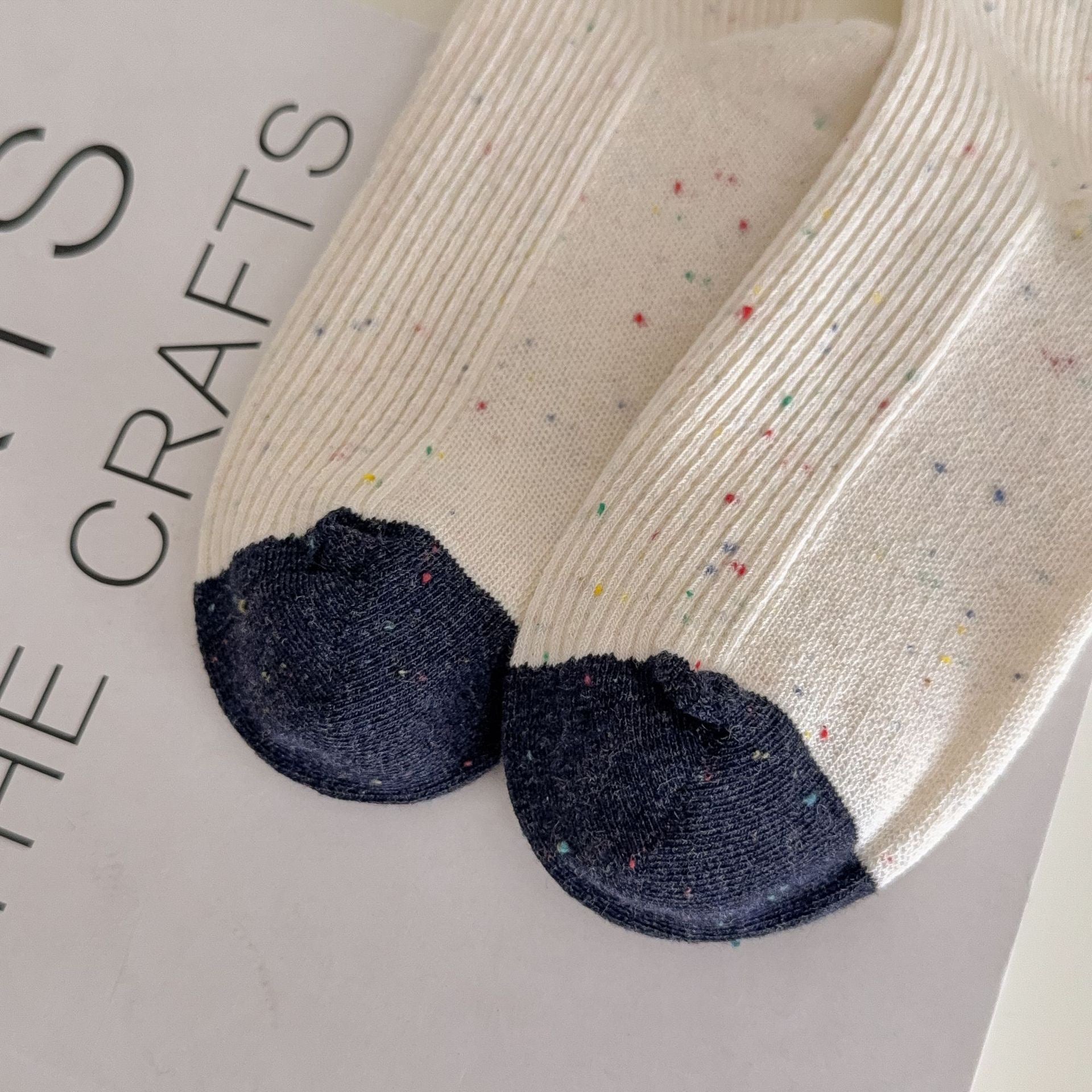 Soft, ribbed ankle socks crafted from speckled yarn, featuring adorable bear embroidery with a tiny red hat. The versatile neutral tones—navy, gray, coffee, off-white, and baby blue—pair effortlessly with loafers, sneakers, or casual shoes for a cozy, playful everyday look. ✨