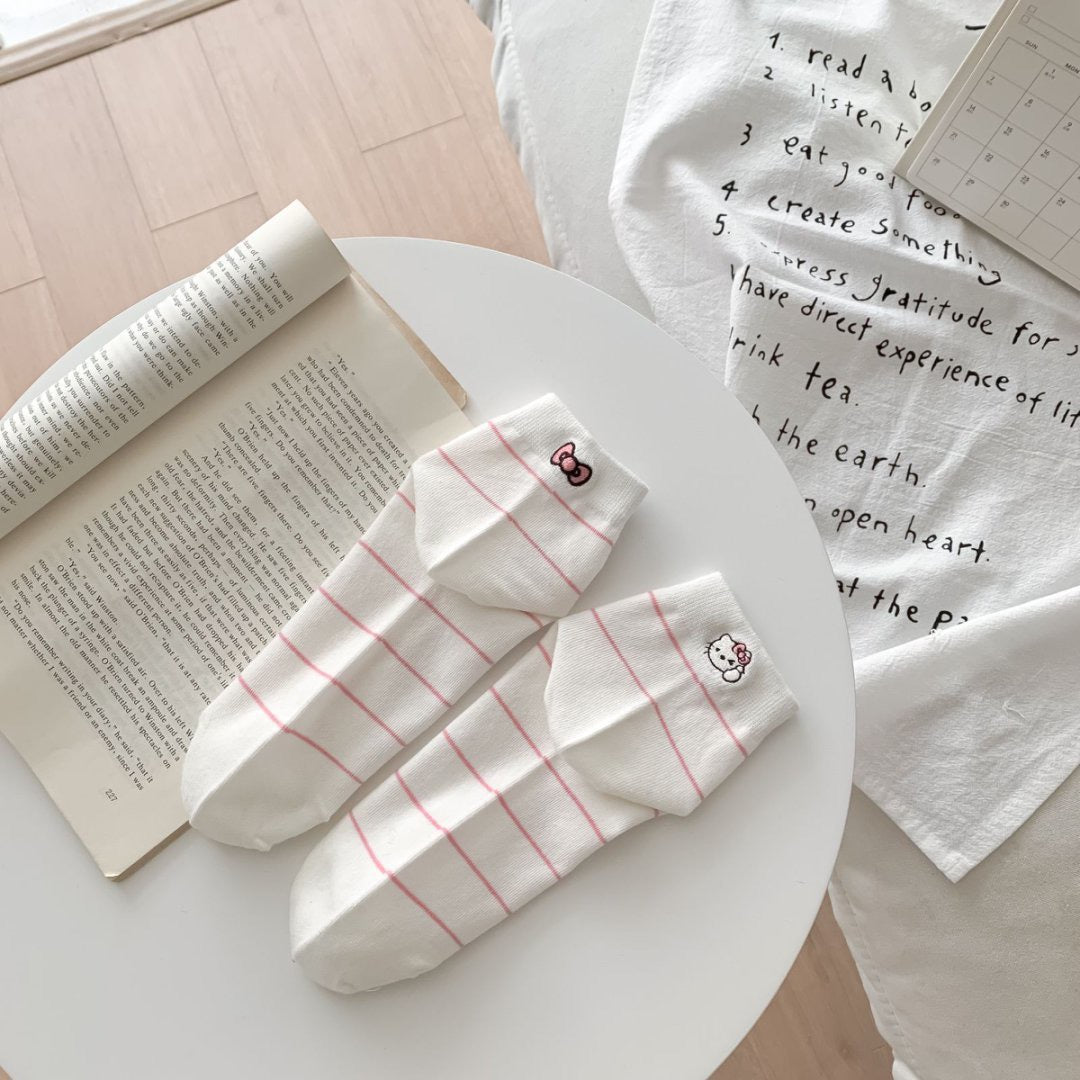 Adorable Kitten Detail: Featuring a tiny, high-density embroidered cat and bow motif on the cuff. Perfect Ankle Length: Low-cut height designed to sit comfortably at the ankle bone. Breathable Cotton Fabric: Premium soft-touch material that ensures all-day ventilation.
